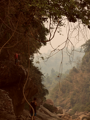 Vrijdag richting Vientiane en ook vandaag is het zicht weer niet helder. Elk jaar verbranden de boeren hun velden om ze vruchtbaarder te maken en branden ze ook hele stukken bos af voor nieuwe akkers. Dit doen ze in maart en april, voor de regentijd die van juni tot oktober duurt. We merken het voor het eerst als we in Luang Prabang zijn. Tegen de middag wordt het heiig en als we kenners moeten geloven komt dat door de rook. Net als we denken dat dat lichtelijk overdreven is, zien we hele stukken helemaal zwart. Hier en daar moet het uit de klauwen gelopen zijn… het is echt een rookdeken die over het hele land hangt. Jammer van het uitzicht, en gezond is het ook niet. Het verklaart waarom op onze foto’s vergezichten op bergen er soms mystiek uitzien…